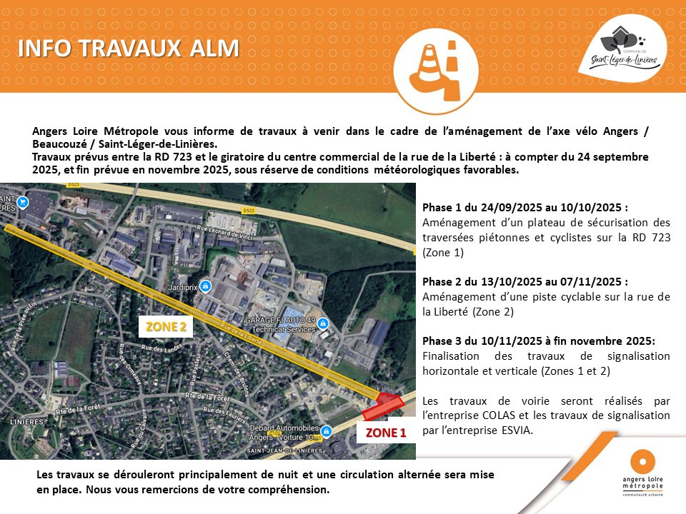 Angers Loire Métropole vous informe de travaux rue de la Liberté à Saint-Jean-de-Linières.