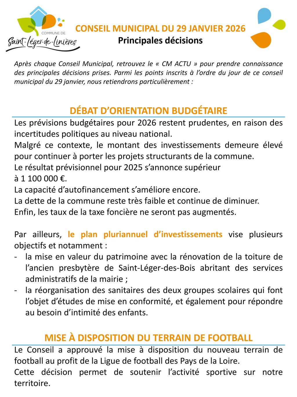 Après chaque Conseil Municipal, retrouvez le « CM ACTU » pour prendre connaissance des principales décisions prises.