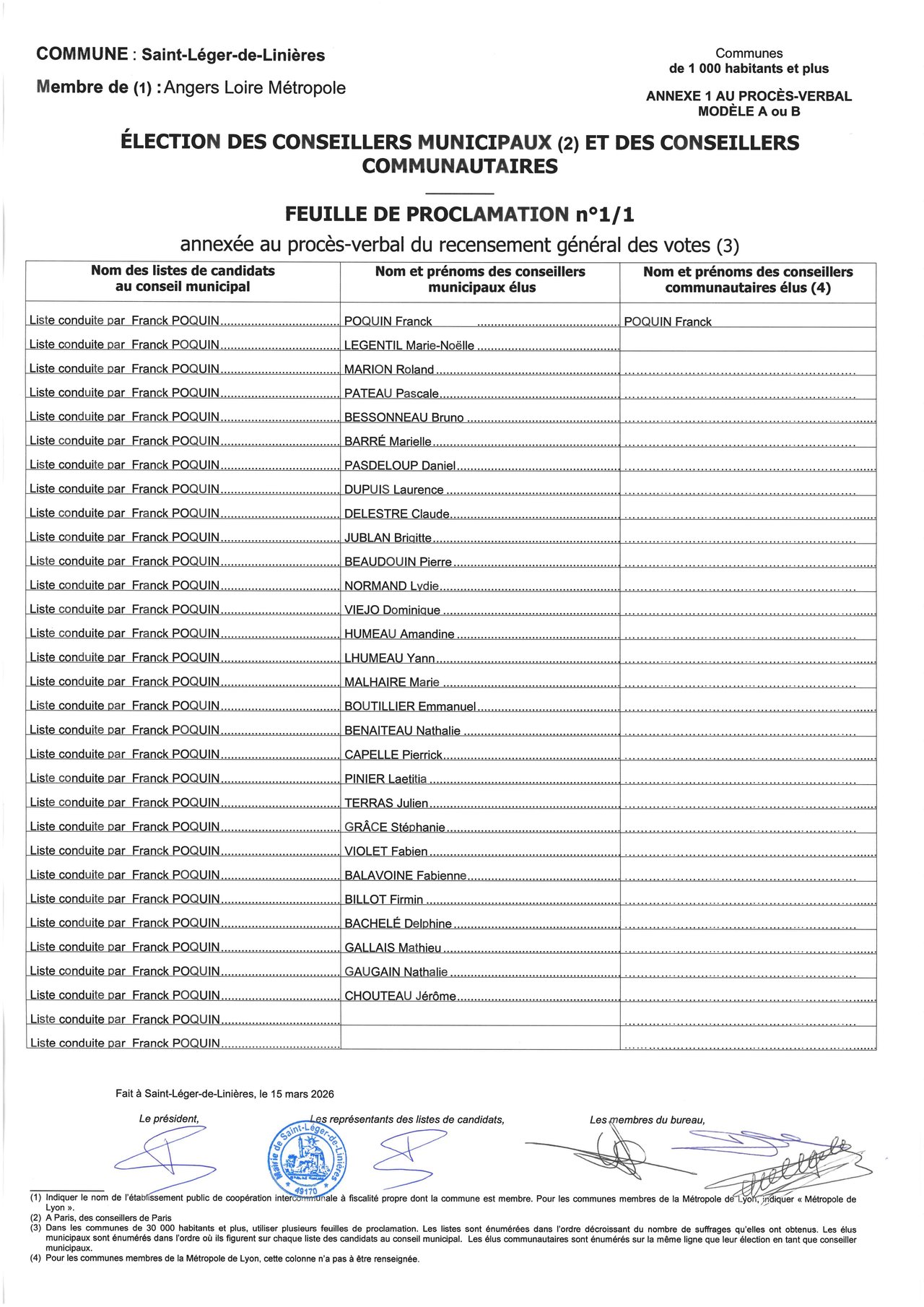 ÉLECTIONS MUNICIPALES DU 15 MARS 2026, RÉSULTATS
