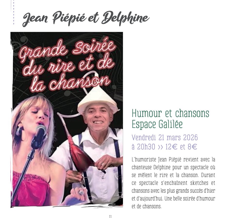 L'humoriste Jean Piépié revient avec la chanteuse Delphine pour un spectacle ou se mêlent le rire et la chanson. Durant ce spectacle s'enchaînent sketches et chansons avec les plus grands succès d'hier et d'aujourd'hui. Une belle soirée d'humour et de chansons.