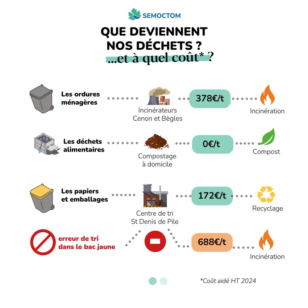 Le SEMOCTOM a publié son rapport annuel. À cette occasion, il a créé une infographie claire et pédagogique afin de mieux comprendre le parcours des déchets et les coûts liés à chaque filière.