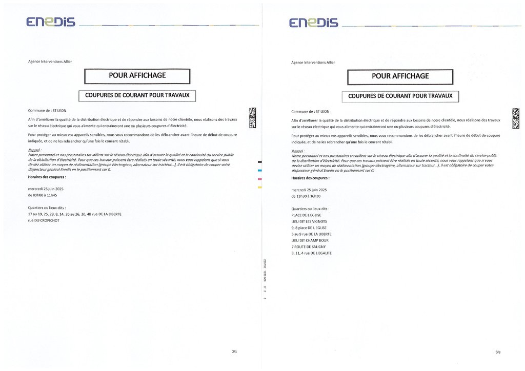 Coupures de courant pour travaux