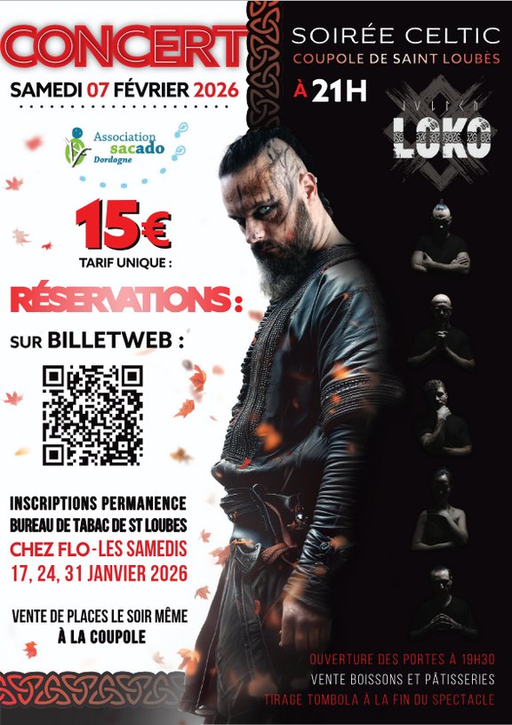 ➡ L'association "SACADO DORDOGNE" organise un CONCERT CELTIC - Julien LOKO IRISH BAND
