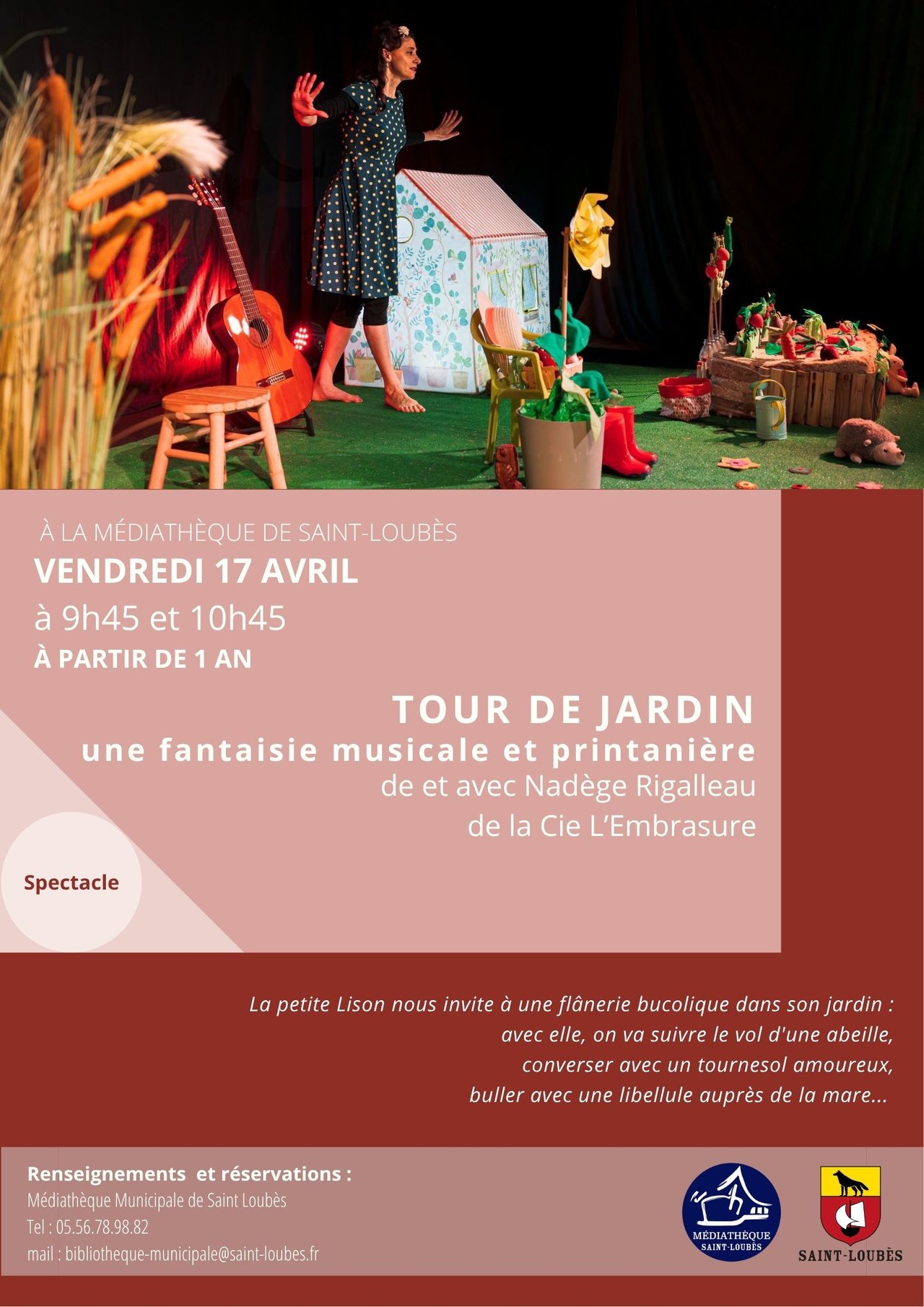 #bibliothequesaintloubes #mediathequesaintloubes #mediatheque #saintloubes #spectaclejeune #musique #nadegerigalleau #tourdejardin #Lembrasure