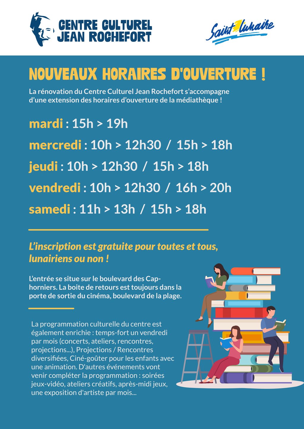 La rénovation du Centre Culturel Jean Rochefort s’accompagne d’une extension des horaires d’ouverture !