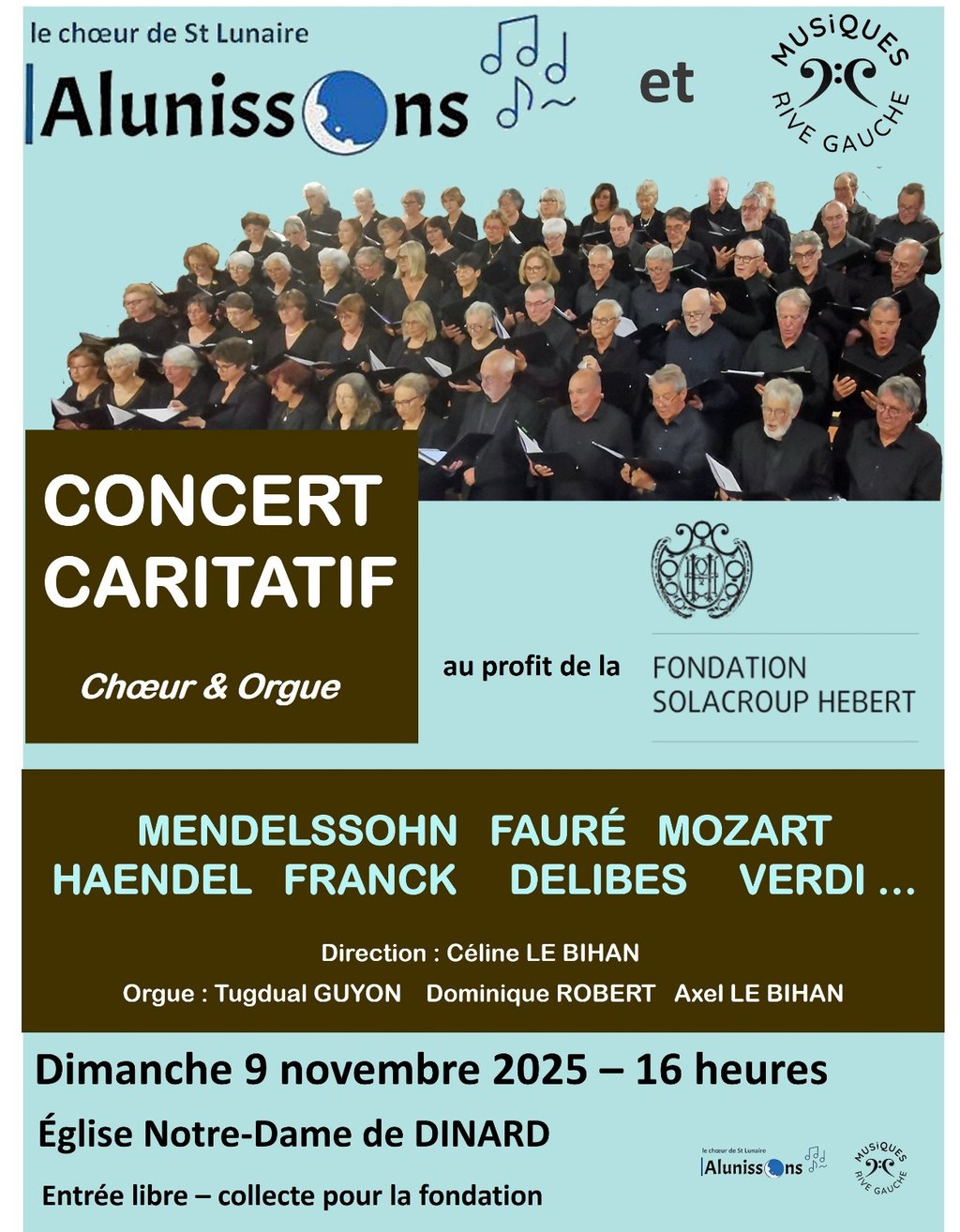 Au programme de la rentrée 2025, les 73 choristes préparent le concert qui sera donné le dimanche 9 novembre 2025 à 16h00 à l’église N-D de Dinard au profit de la fondation Solacroup.