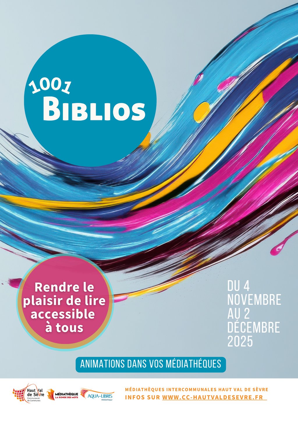 Du 4 novembre au 2 décembre 2025, les médiathèques intercommunales Haut Val de Sèvre vous invitent à un mois d’animations autour des arts comme moyen d’expression, d’inclusion et de sensibilisation. Ce programme s’inscrit dans le cadre de la Journée internationale des personnes handicapées (3 décembre) et valorise les collections adaptées aux handicaps disponibles dans les médiathèques.