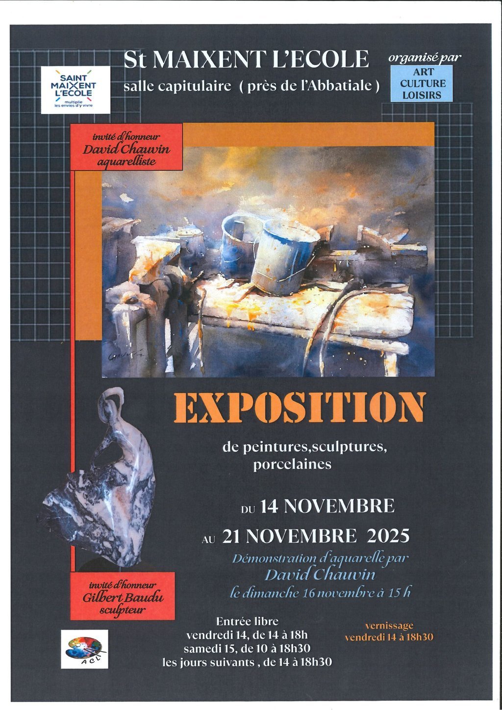 Exposition de peintures, sculptures, porcelaines.