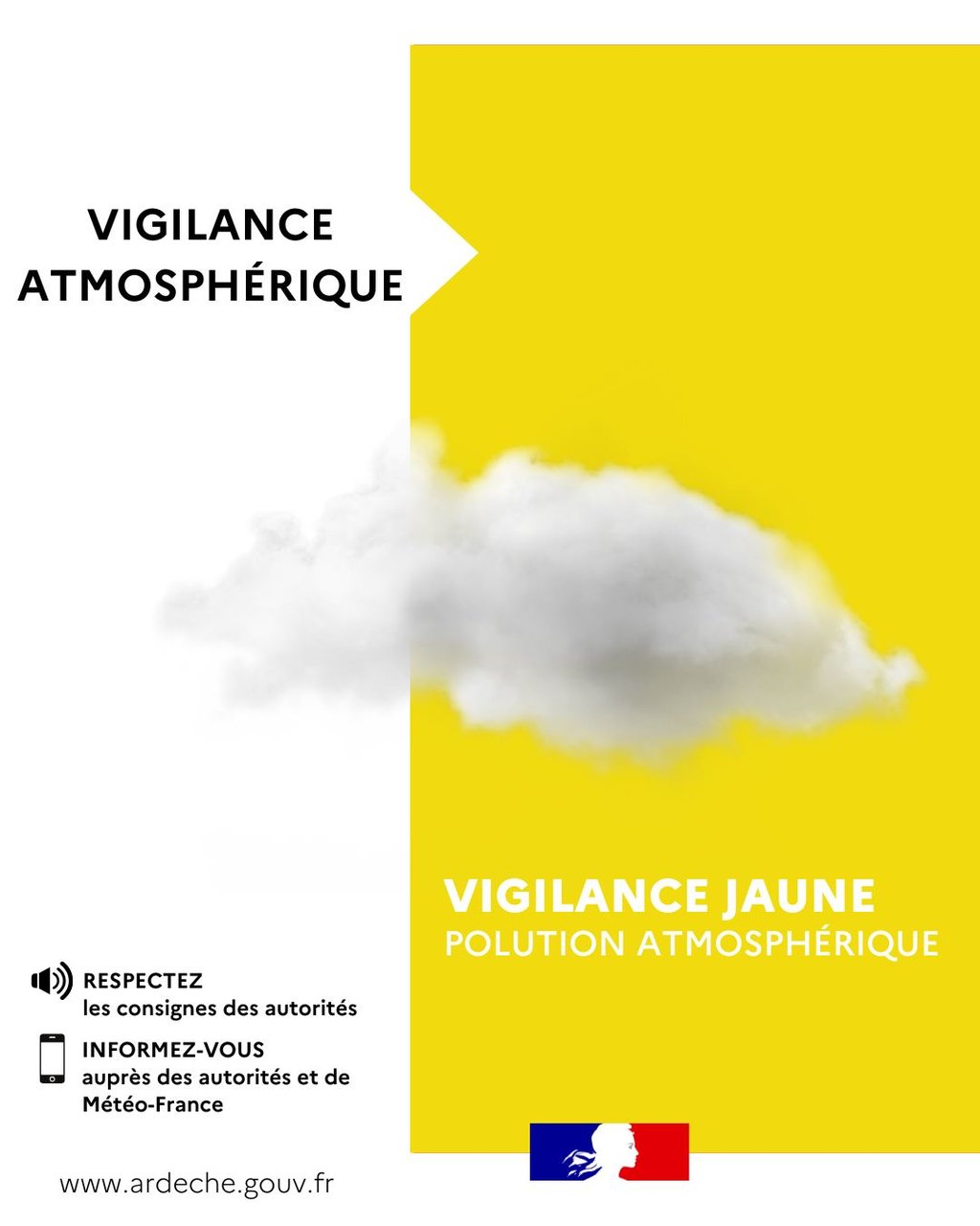 COMMUNIQUÉ PRÉFECTURE : LE DÉPARTEMENT DE L'ARDÈCHE EST PLACÉ EN VIGILANCE JAUNE POLLUTION