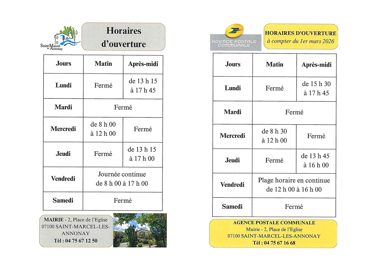 MODIFICATION DES HORAIRES D'OUVERTURE DE L'AGENCE POSTALE COMMUNALE À COMPTER DU LUNDI 1ER MARS
