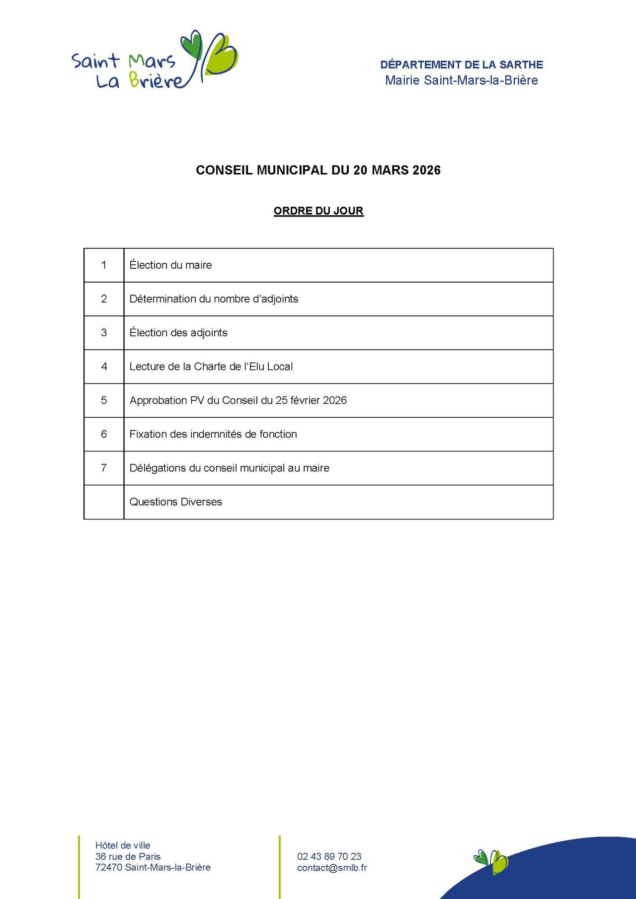 CONSEIL MUNICIPAL DU 20 MARS 2026