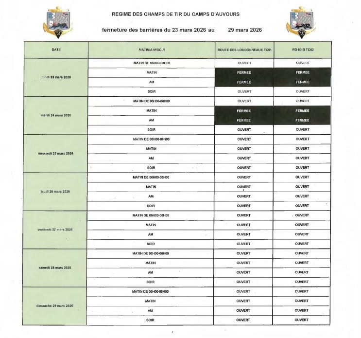 ⛔ CONSULTEZ LES HORAIRES DES FERMETURES DE BARRIÈRES DU CAMP D'AUVOURS