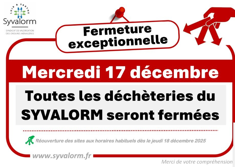 FERMETURE EXCEPTIONNELLE DES DÉCHÈTERIES : MERCREDI 17 DÉCEMBRE