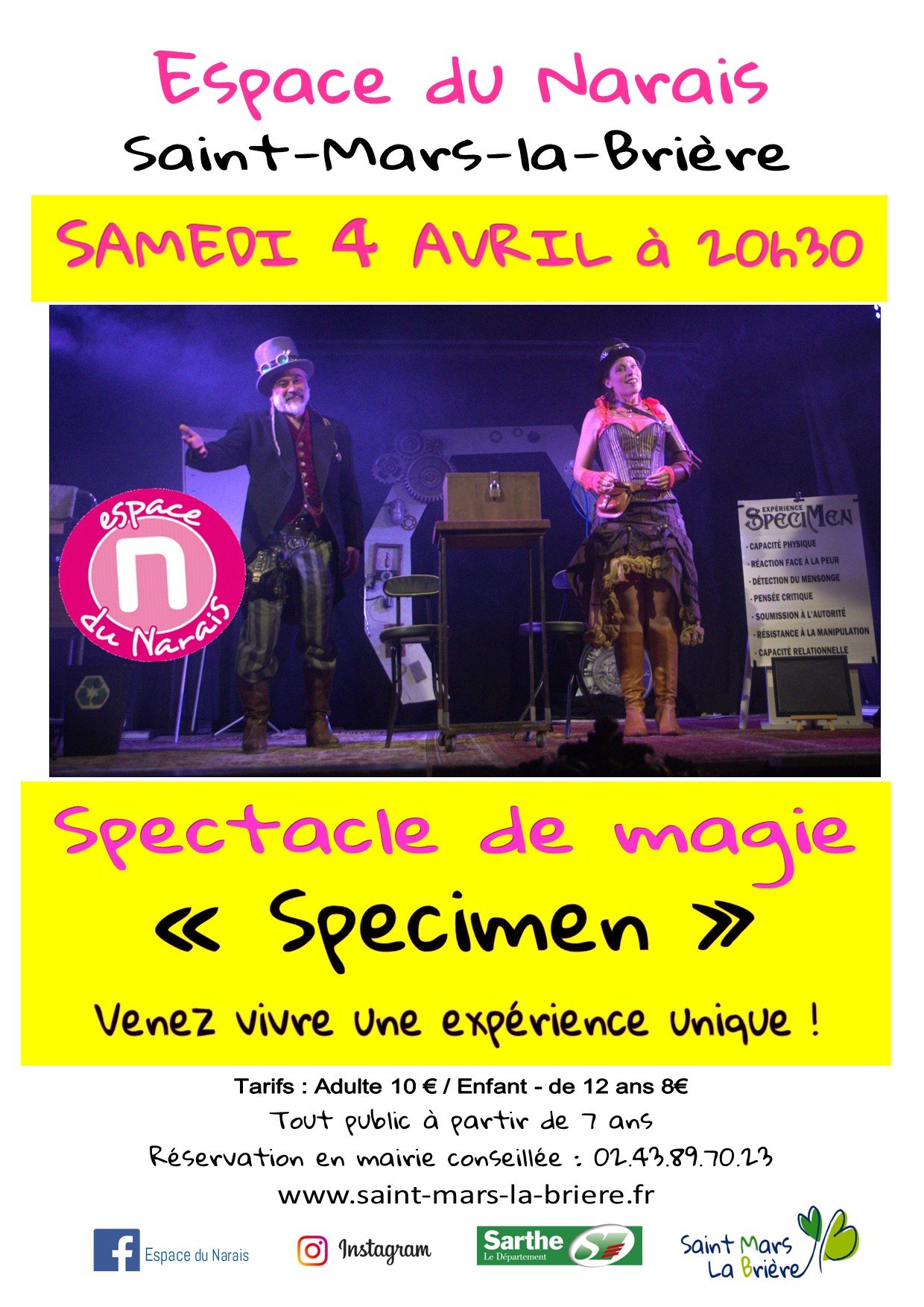 SPECTACLE DE MAGIE "SPECIMEN" : SAMEDI 4 AVRIL À L'ESPACE DU NARAIS !