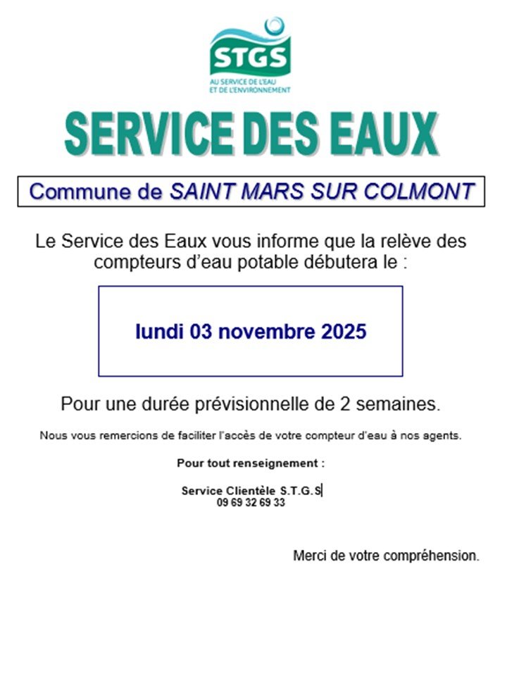 Nous vous informons que la relève des compteurs d'eau débutera prochainement sur votre commune.