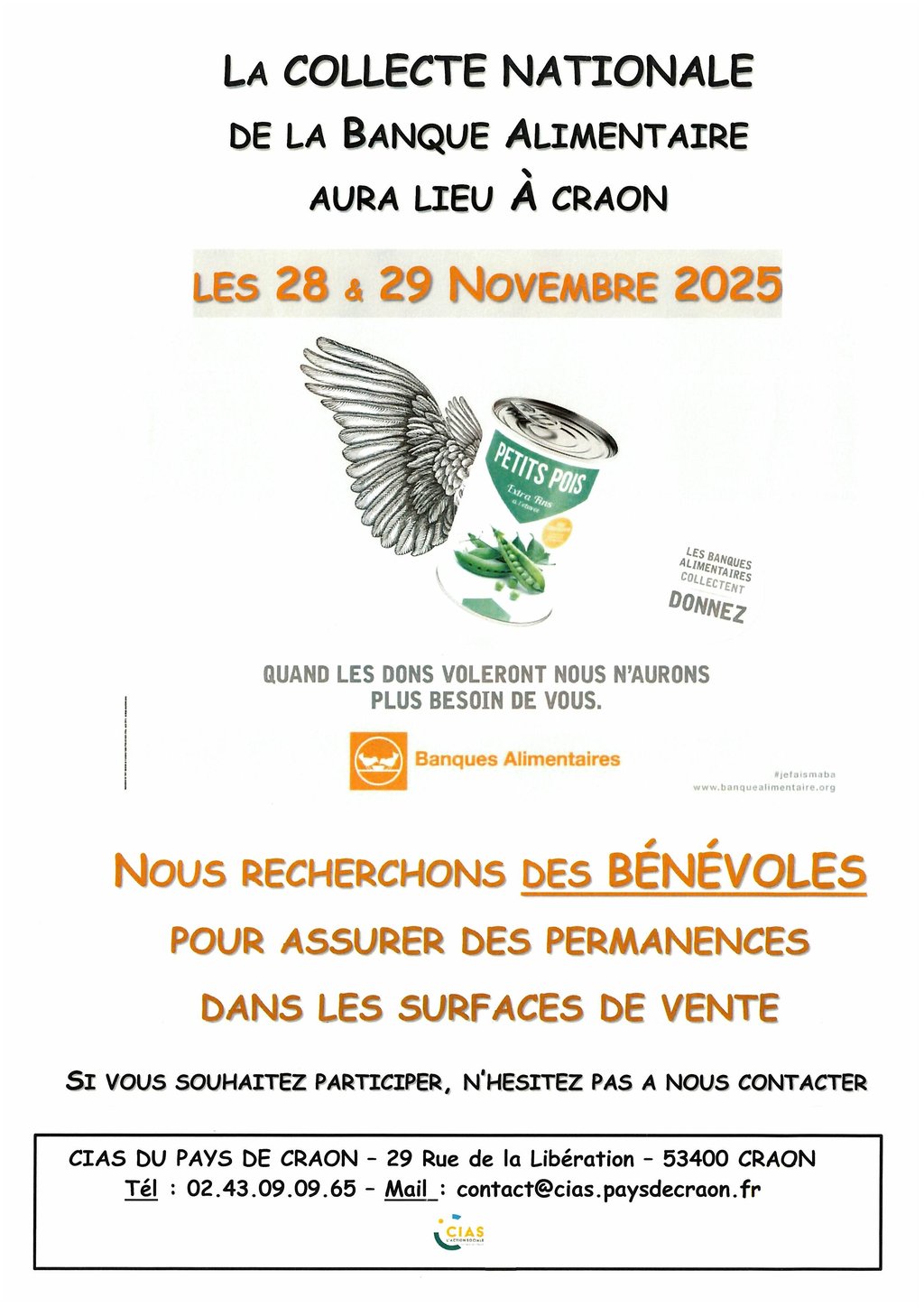 Dans le cadre de la collecte nationale de la Banque Alimentaire, le Cias recherche des bénévoles pour assurer des permanences dans les surfaces de vente.