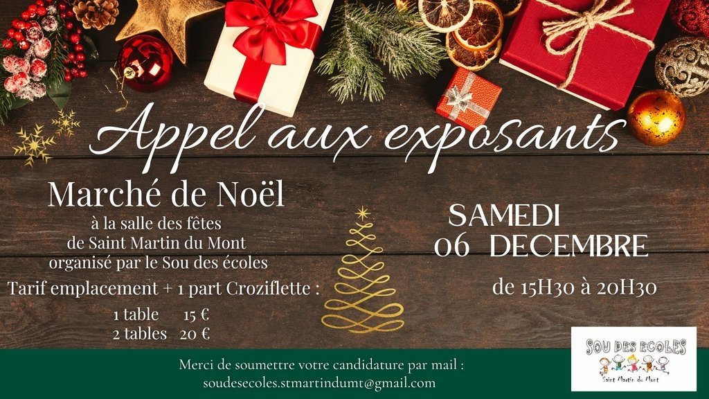 Si vous souhaitez vous joindre à nous en tant qu'exposant pour notre marché de Noël du Samedi 6 Décembre, n'hésitez pas à prendre contact par mail en remplissant le dossier de candidature.