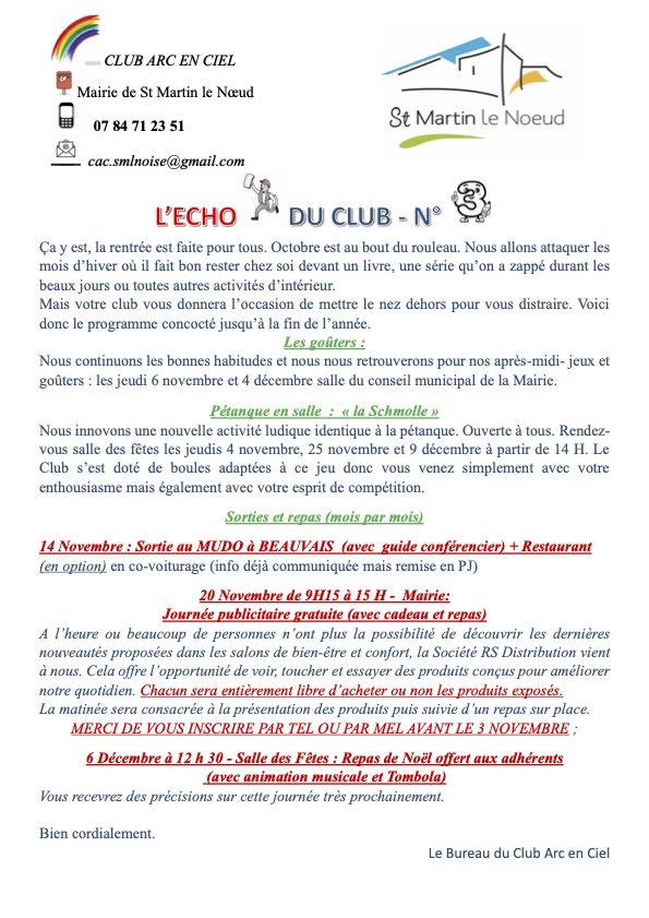 Retenez la date du repas de fin d'année le Samed 6 décembre à 12 h 30