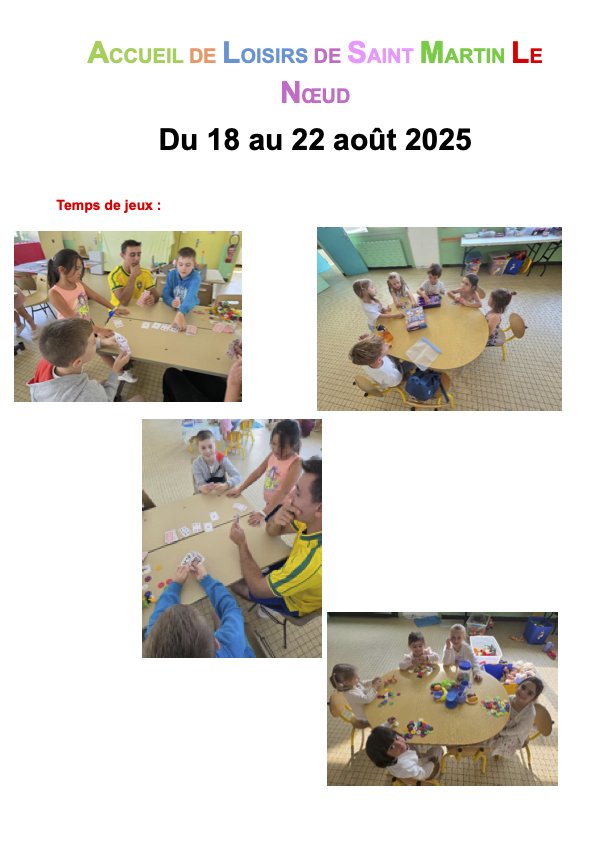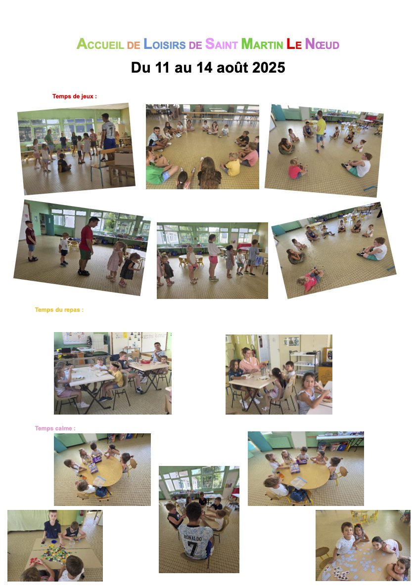 L'été, la CANOPÉE accueille les enfants durant les vacances scolaires ; en 2025 à l'école de Aux Marais en juillet et à l'école de Saint Martin le Nœud en août, l'été prochain, ce sera l'inverse.