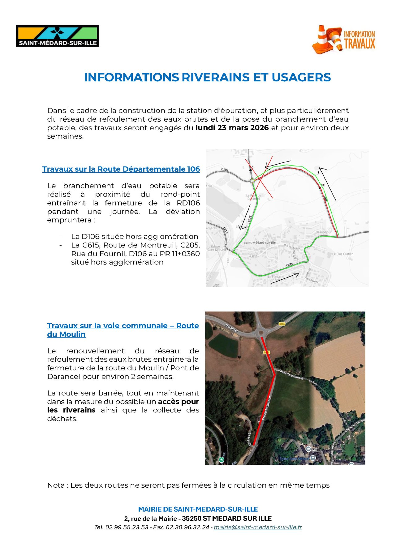 Dans le cadre de la construction de la station d’épuration, des travaux auront lieu à partir du lundi 23 mars 2026 pour une durée d’environ deux semaines.
