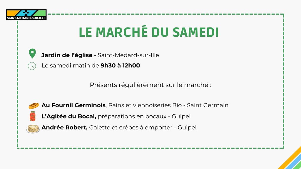 Retrouvez chaque samedi matin de 9h30 Ă 12h00 vos artisans commerçants dans le jardin de l'Ă©glise !Â