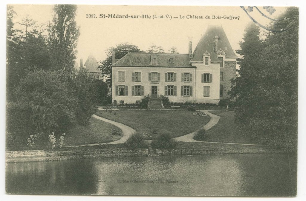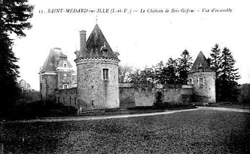 Les seigneurs les plus influents de Saint-Médard-sur-Ille résidaient au Bois Geffroy, forteresse érigée sur une terre relevant de la baronnie d’Aubigné. La seigneurie du Bois Geffroy s’était établie vers la fin du Xème siècle après les invasions normandes. Au XIème siècle on trouve trace de sancti medard. Le château féodal du Bois Geffroy fut sans doute construit à cette époque. De l’édifice d’origine on ne voit plus aujourd’hui que cinq tours dont deux sont à moitié démolies et une complètement. Une partie des remparts subsistent encore.