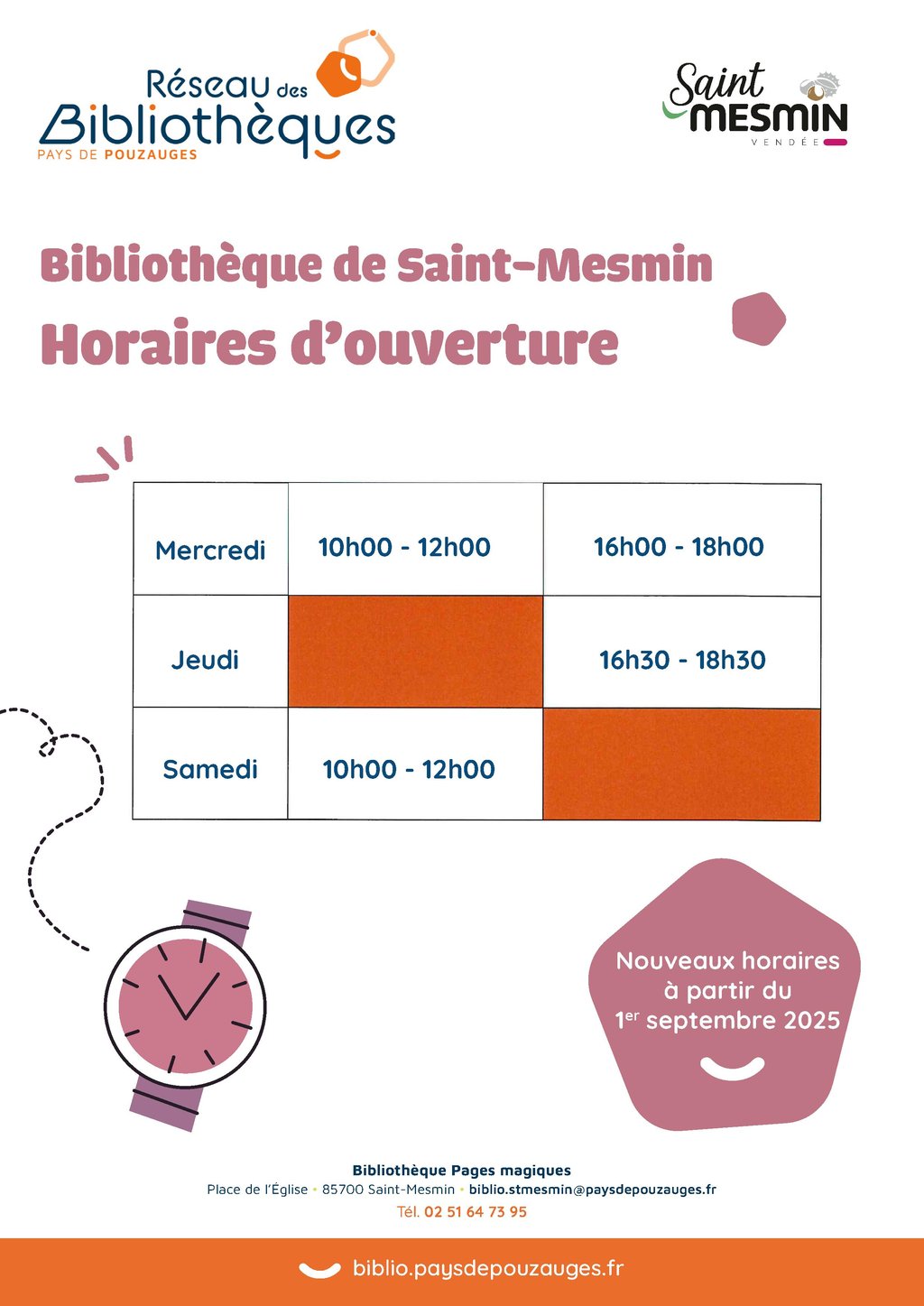 đ NOUVEAUX CRĂNEAUX HORAIRES D'OUVERTURE DE LA BIBLIOTHĂQUE :