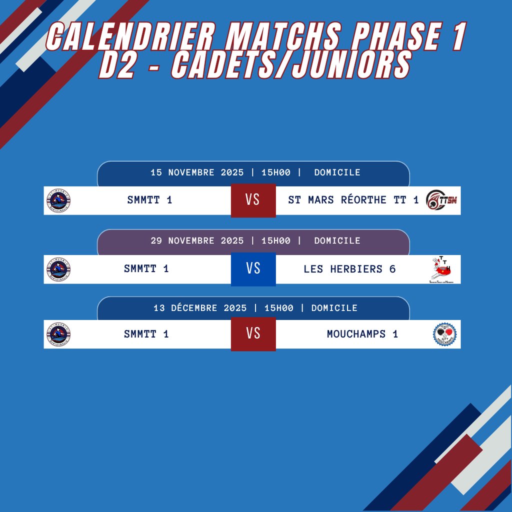 🏓 SMMTT – CALENDRIER PHASE 1 CADETS/JUNIORS 💙