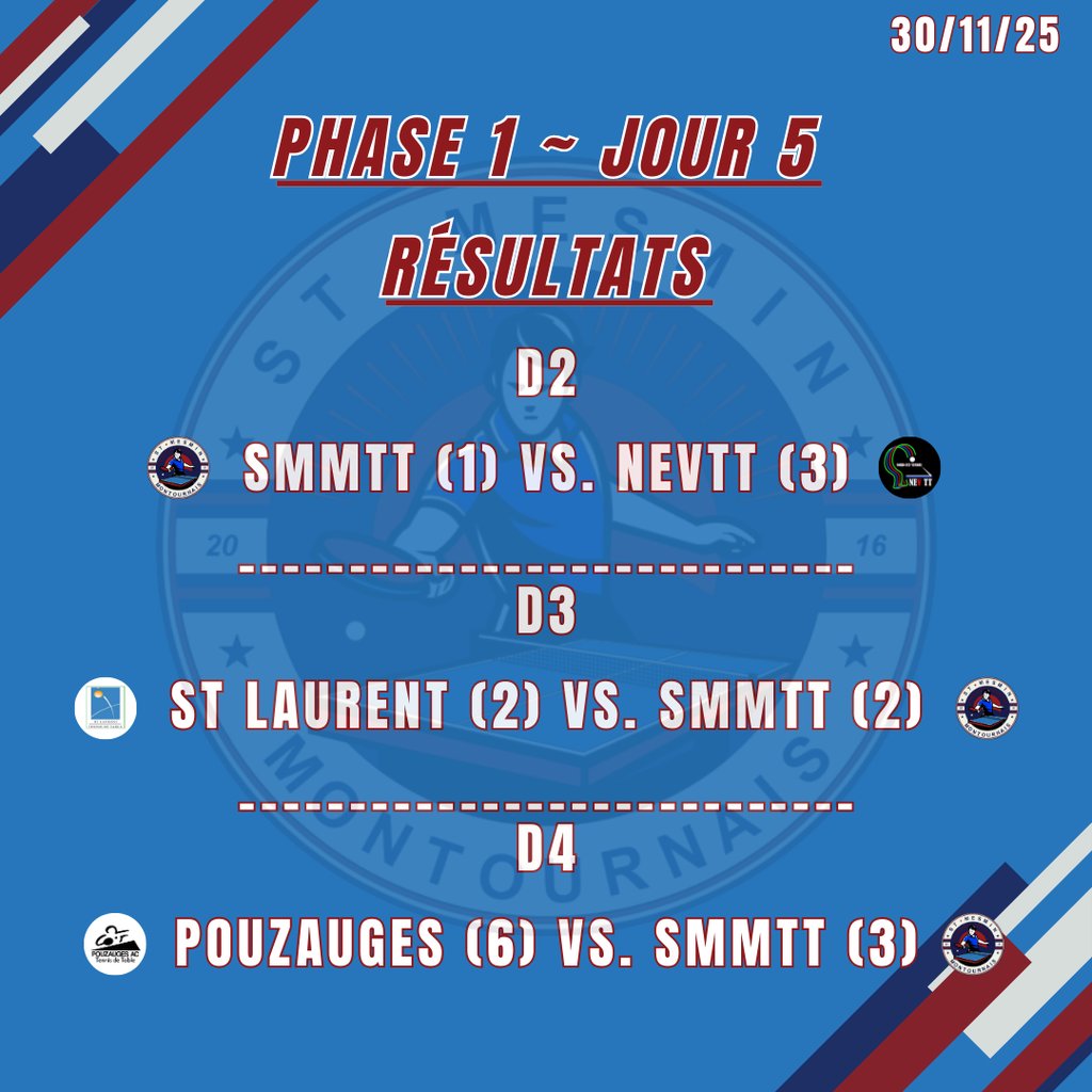 🏓 RETOUR SUR LA 5ÈME JOURNÉE – PHASE 1 DU CHAMPIONNAT SENIORS AU SMMTT ! 🔵