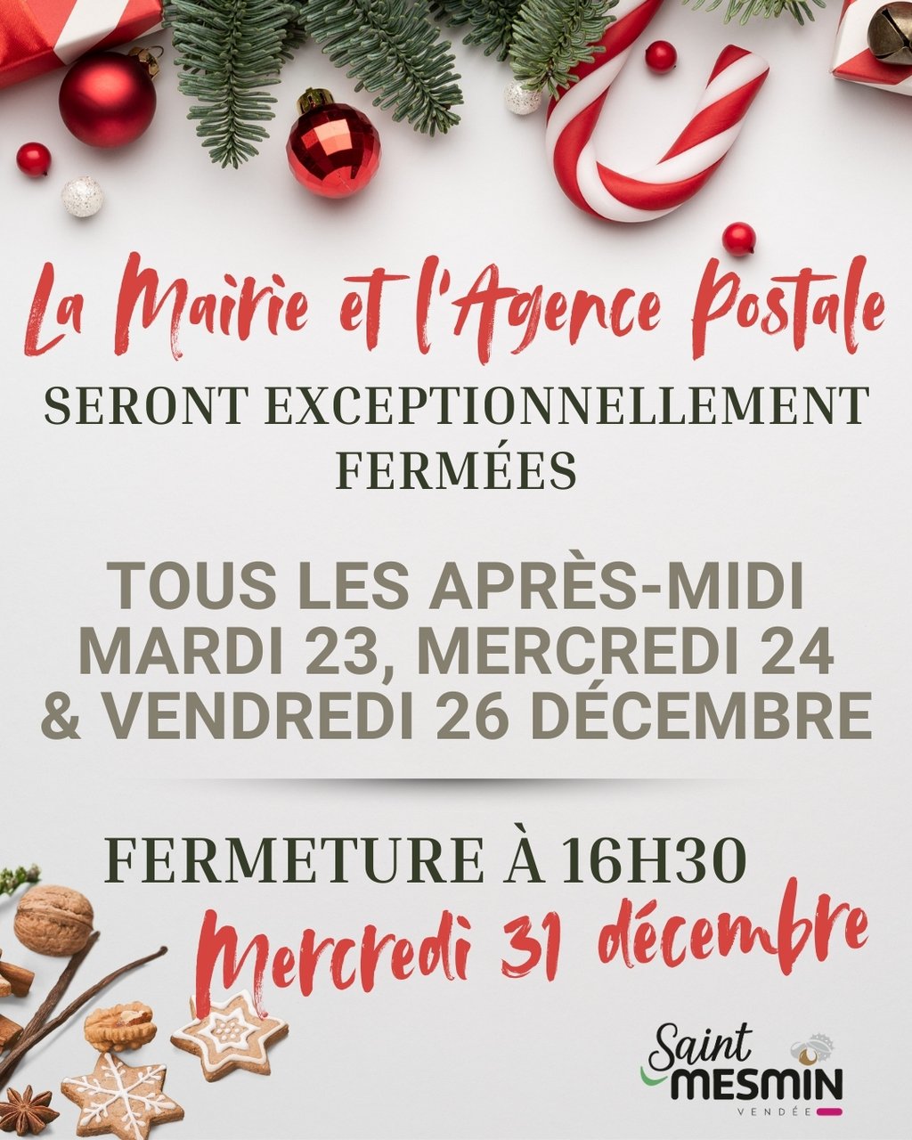 FERMETURE EXCEPTIONNELLE DE LA MAIRIE ET DE L'AGENCE POSTALE
