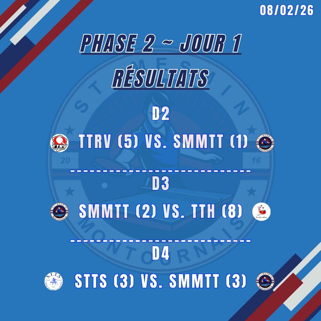 Publié le jeudi 12 février 2026 - Saint-Mesmin - Montournais Tennis de Table