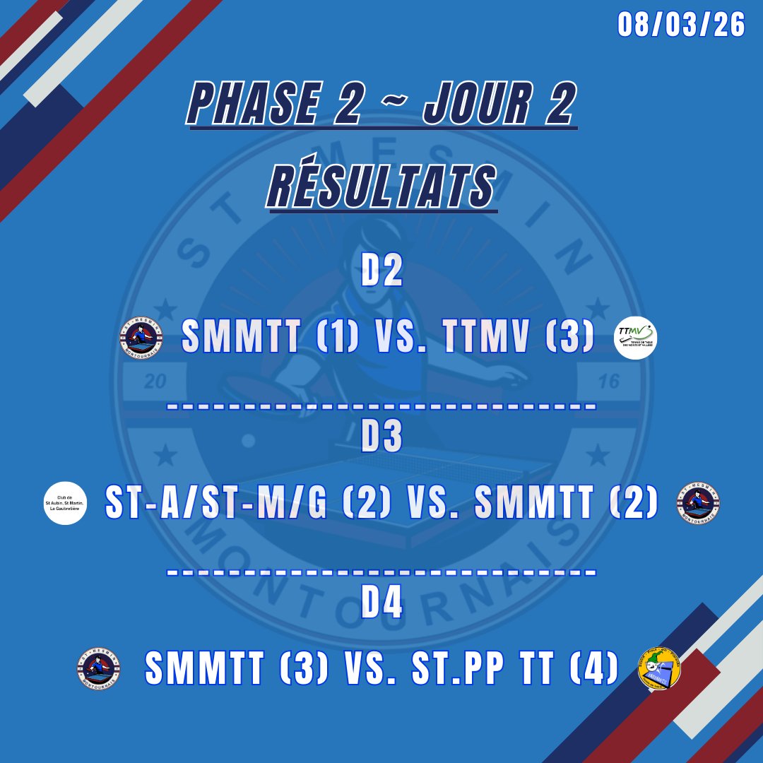 Publié le mercredi 11 mars 2026 - Saint-Mesmin - Montournais Tennis de Table