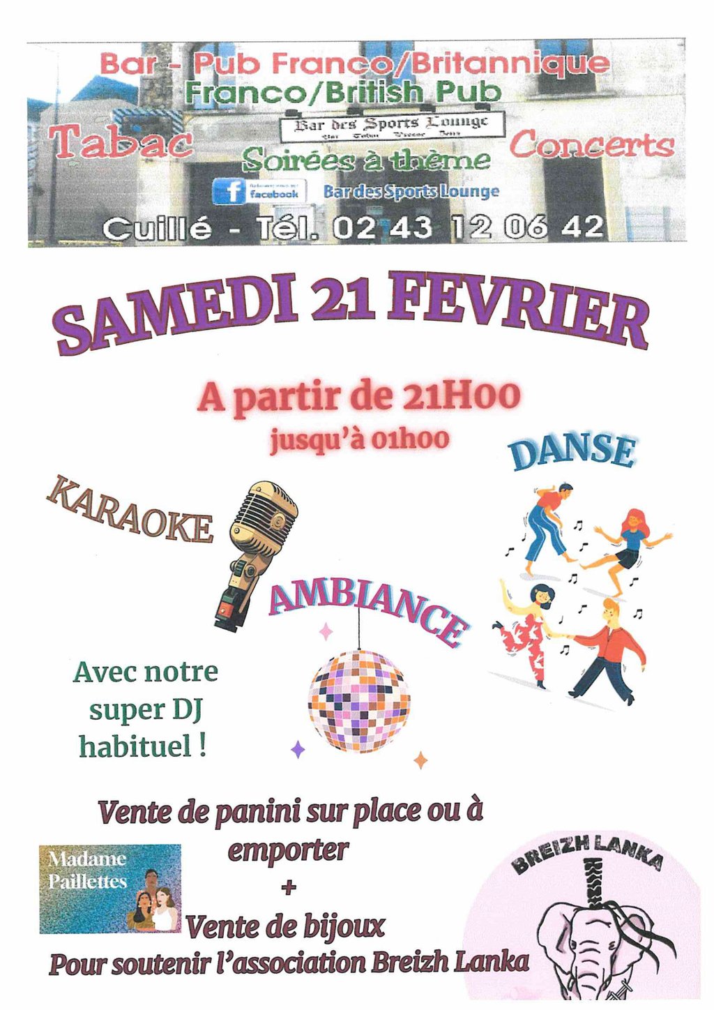 Samedi 21 février à partir de 21 H 00 le bar des sports de Cuillé organise une soirée karaoké.