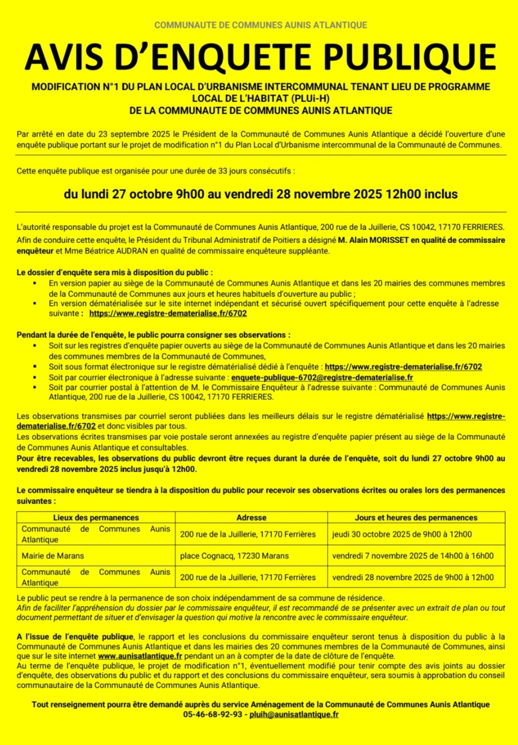 AVIS ENQUÊTE PUBLIQUE MODIFICATION PLUIH