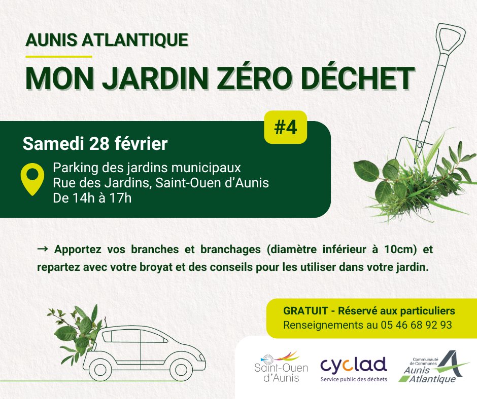 La CDC Aunis Atlantique organise des sessions de broyage gratuites au cœur des communes. Le principe est simple : vous apportez vos branches, elles sont broyées sur place, et vous repartez avec le broyat pour votre jardin.