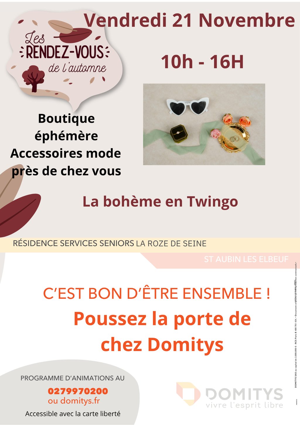 Boutique éphémère au sein de la résidence Domitys accessoires mode, Entrée gratuite.