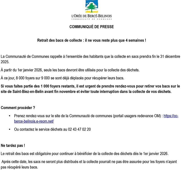 site de Saint-Biez-en-Belin avant fin novembre et éviter toute interruption dans la collecte de vos déchets.