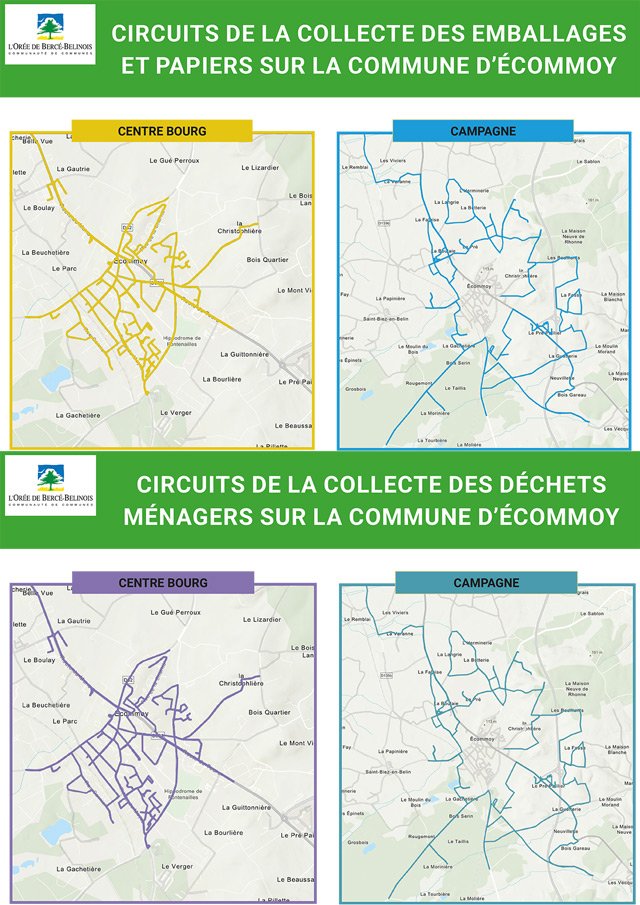 ENVIRONNEMENT : CARTES DES CIRCUITS DE COLLECTE POUR LA COMMUNE D’ECOMMOY
