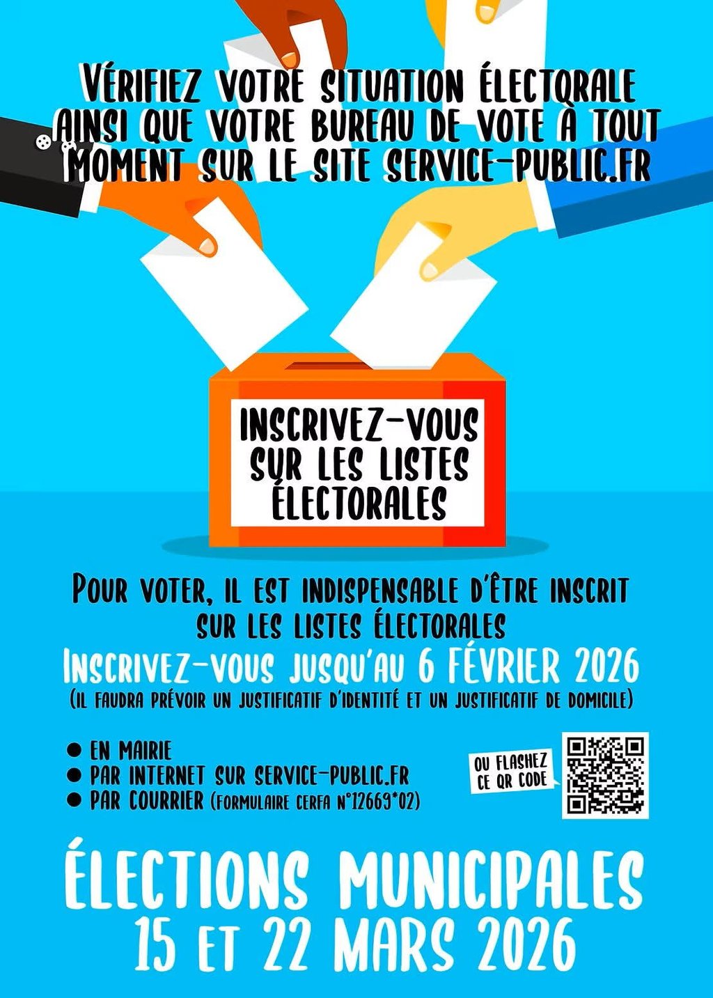 Pour pouvoir voter à ces élections et si vous n'êtes pas encore inscrits sur les listes électorales de votre commune, il convient de s’inscrire :