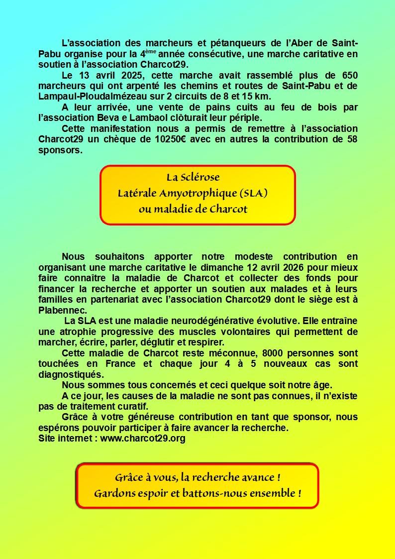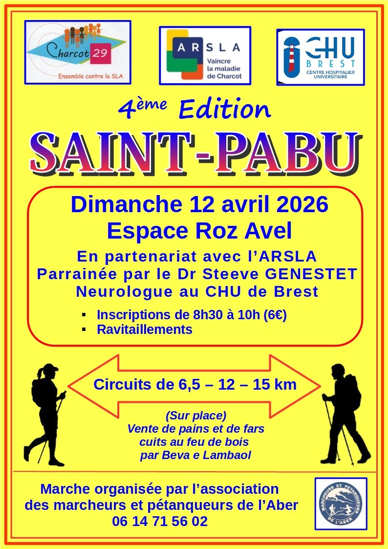 Dimanche 12 avril 2026 à Saint-Pabu, marche en soutien à la maladie de Charcot.