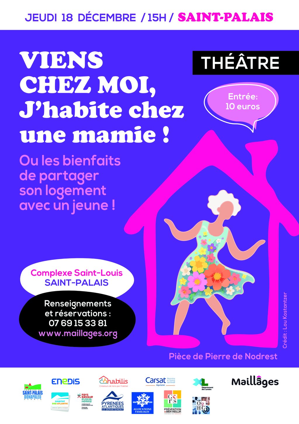 d'avance ! Humour et moments musicaux ponctuent ce spectacle où l'on aborde les bienfaits de la cohabitation intergénérationnelle et solidaire, objet social de l'association Maillâges.