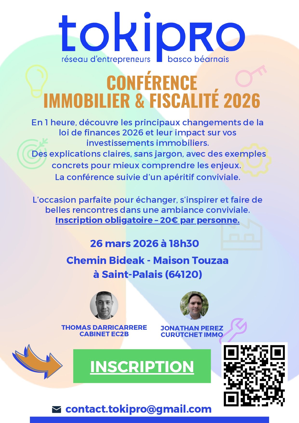 En 1 heure, découvrez les principaux changements de la loi de finances 2026 et leur impact sur vos investissements immobiliers. La conférence sera suivie d'un apéritif convivial.