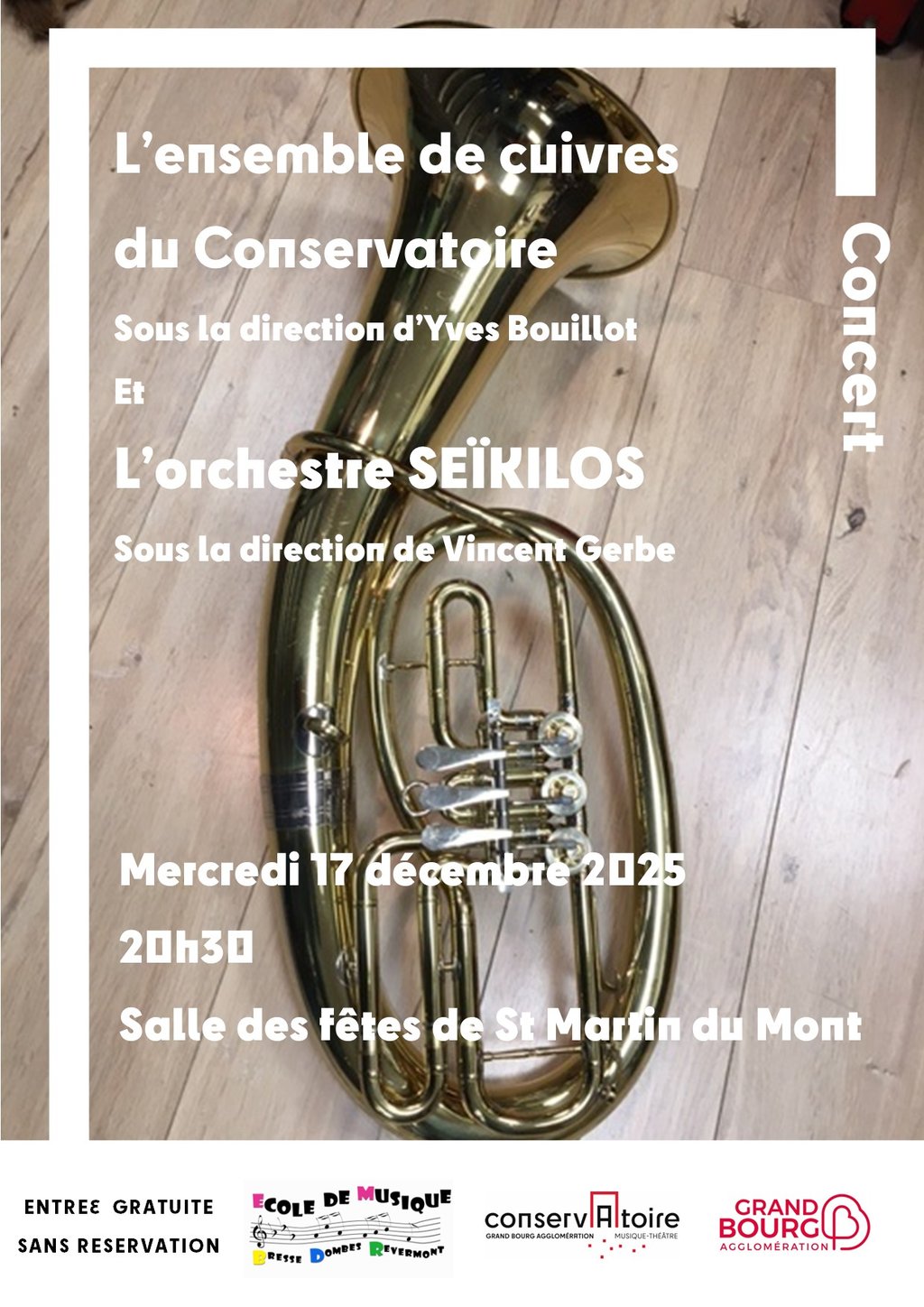 Concert Orchestre Seikilos + Ensemble de Cuivres du Conservatoire d'Agglomeration de Bourg en Bresse