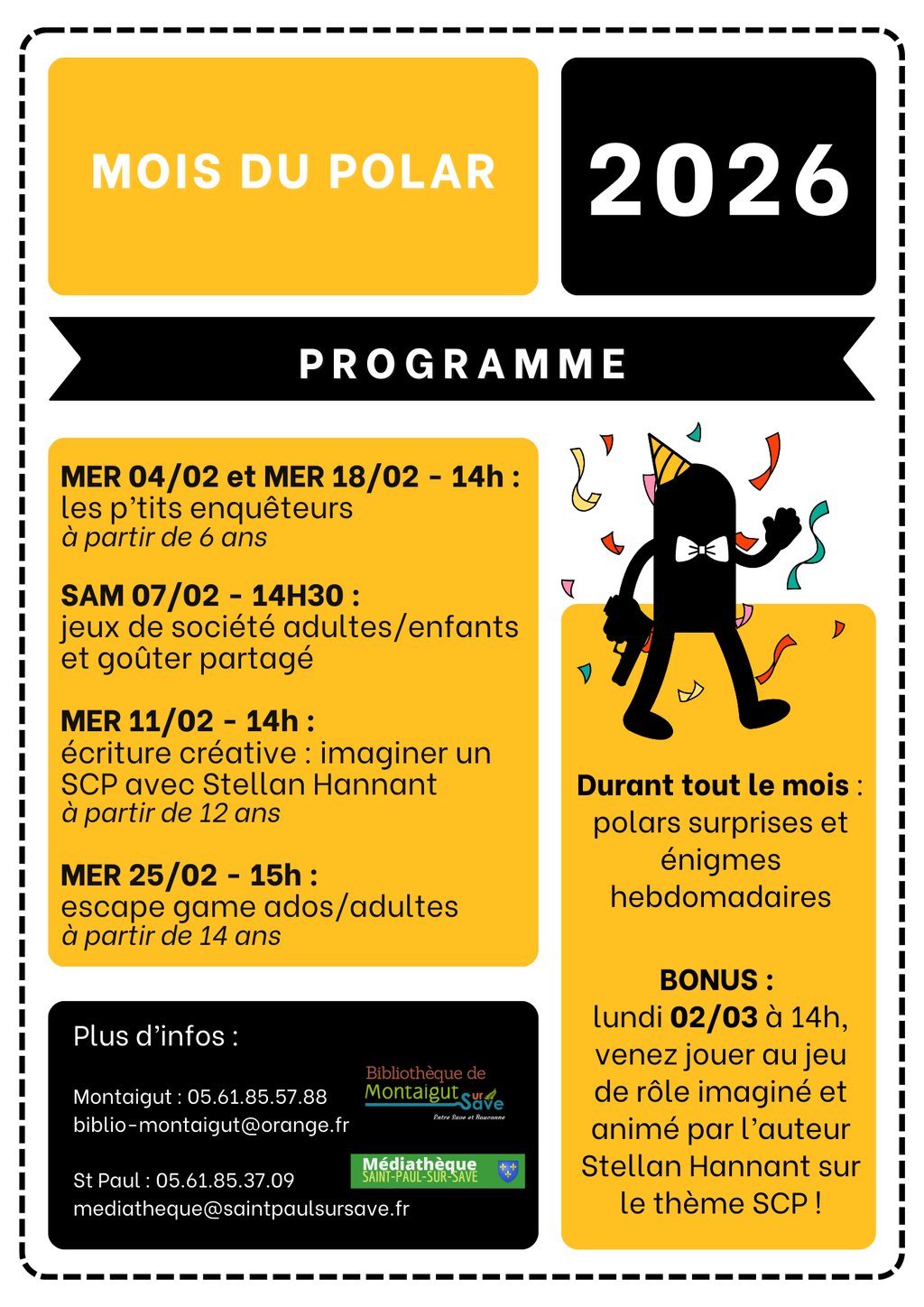 Cette année les deux villes Montaigut et Saint-Paul-sur-Save s'associent pour vous proposez le MOIS DU POLAR !!!