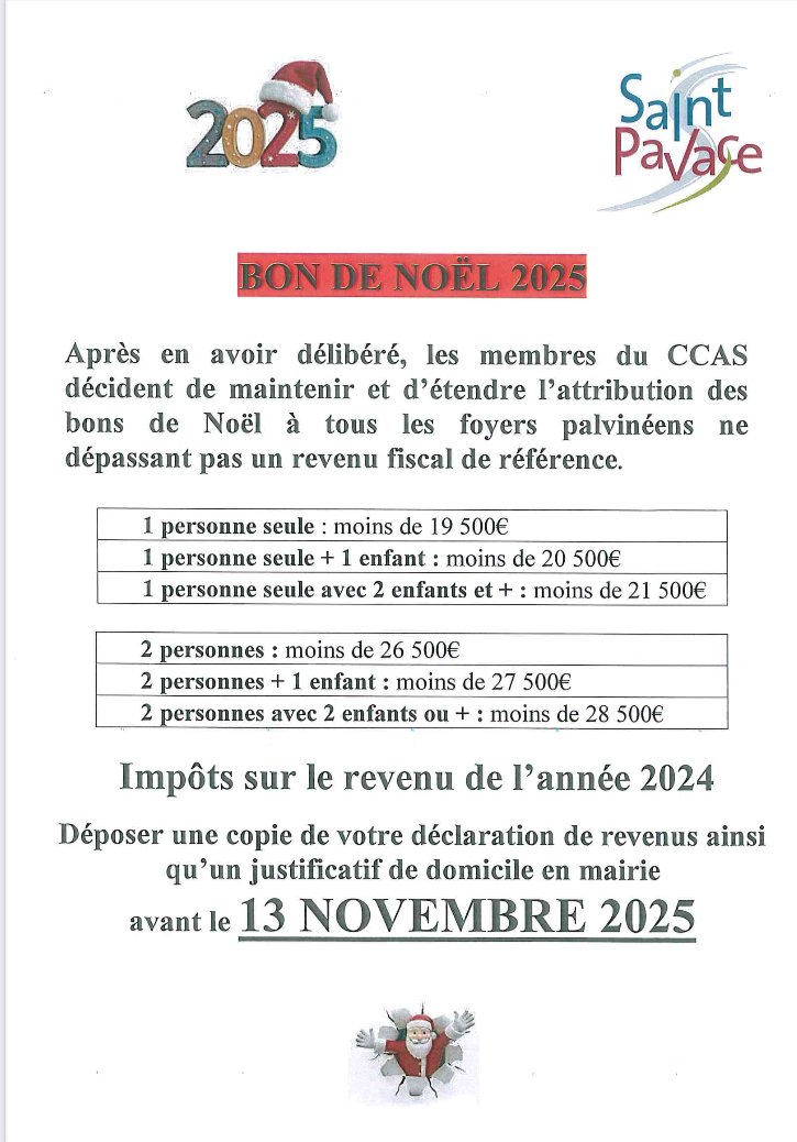 Le Centre Communal d'Action Sociale a décidé de maintenir l'attribution de bons de Noël à tous les palvinéens ne dépassant pas un revenu fiscal de référence.
