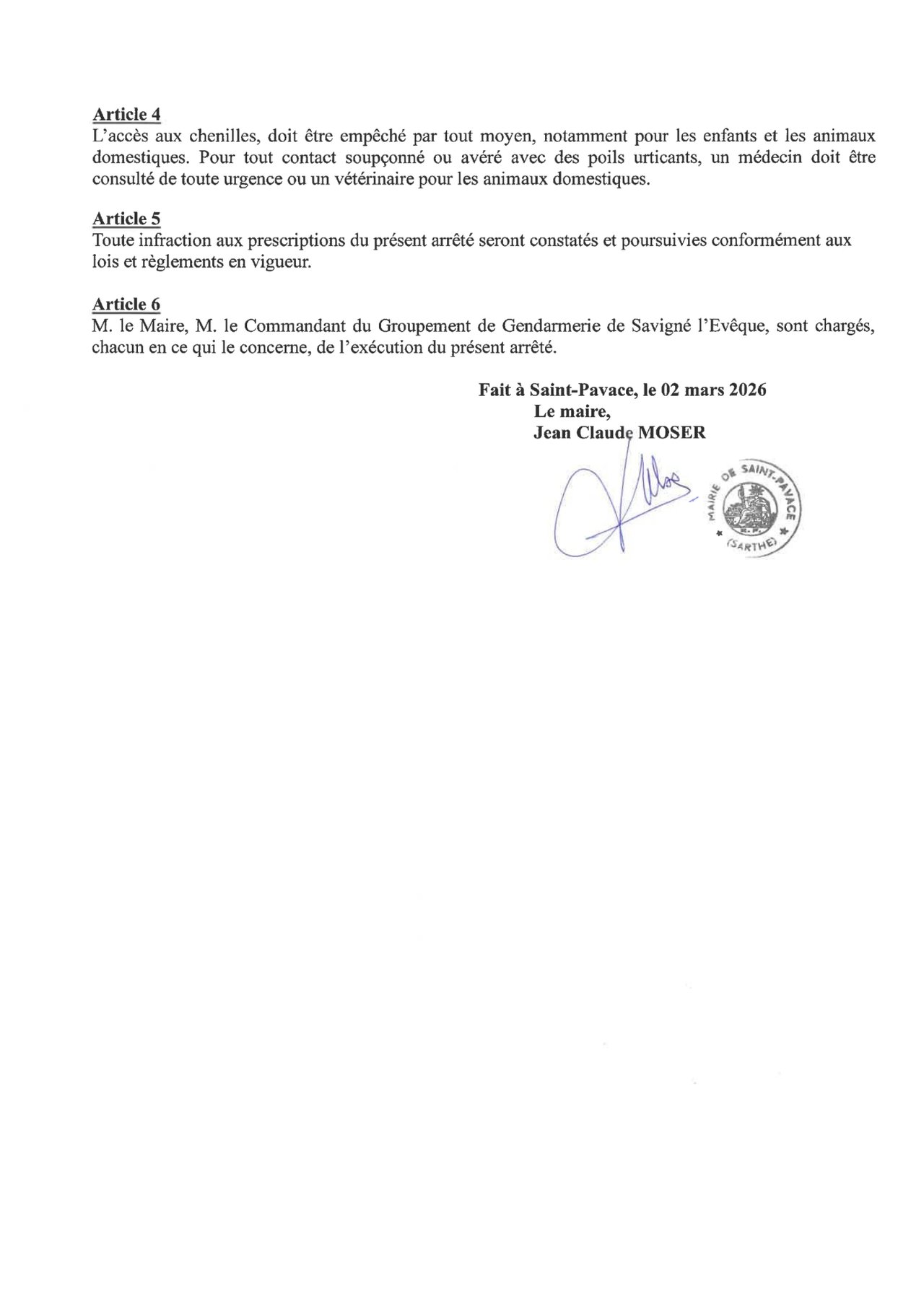 ARRÊTÉ MUNICIPAL PORTANT SUR LES CHENILLES PROCESSIONNAIRES