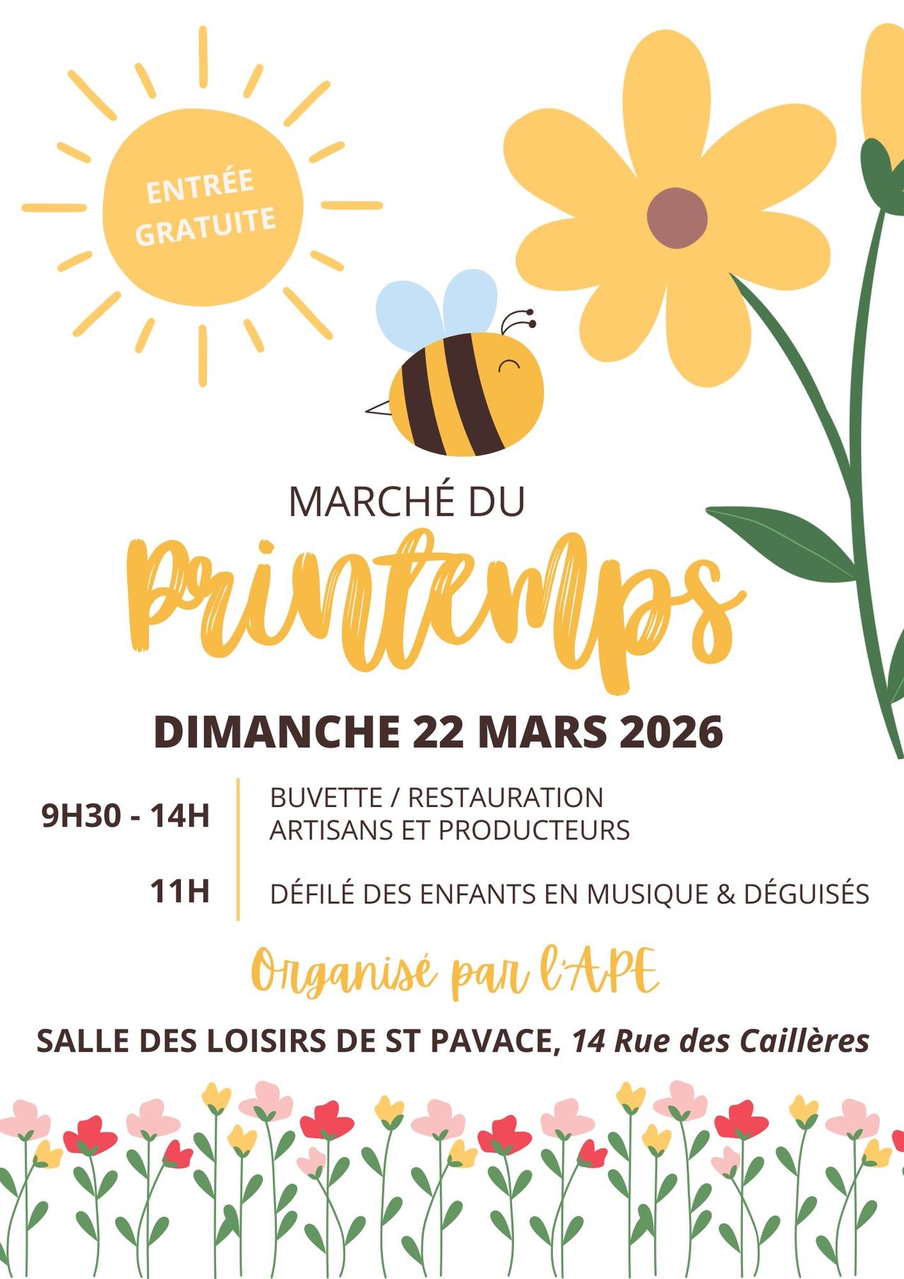 Organisé par l'APE, Marché du printemps le dimanche 22 mars 2026 !
