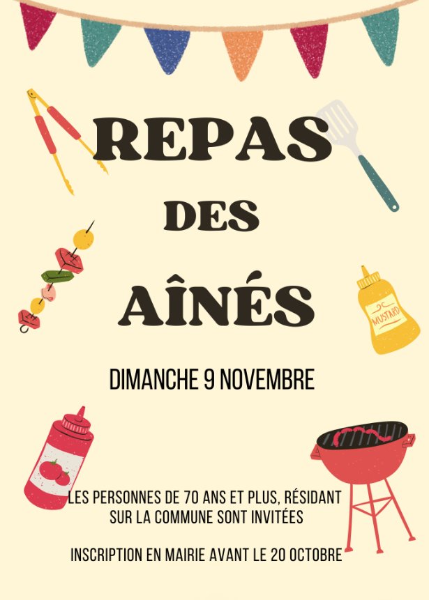 La municipalité invite les personnes de 70 ans et plus, résidant dans la commune, au traditionnel repas des ainés le dimanche 9 novembre au complexe de l’Oust.