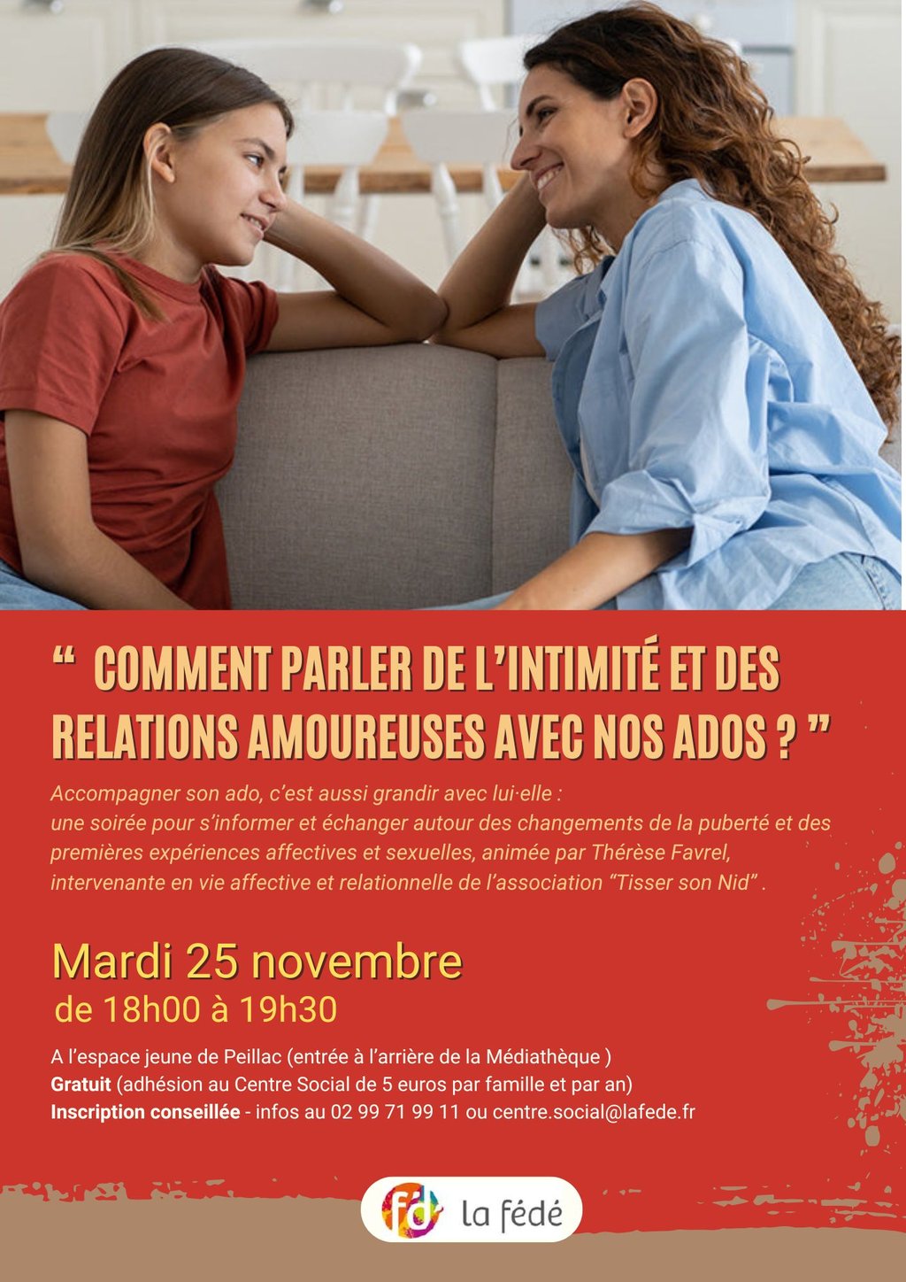 ATELIER DISCUSSION "COMMENT PARLER DE L'INTIMITÉ ET DES RELATIONS AMOUREUSES AVEC NOS ADOS?"