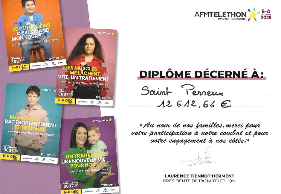 12612.64 euros reversés par ST PERREUX à l’AFM Téléthon